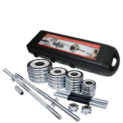 مجموعة أثقال من الكروم عالي الجودة لإكتساب العضلات وبناء الجسم Chrome Dumbell Set Total Weight Includes Bars And Collars