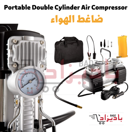 منفاخ إطارات محمول بضاغط هواء مزدوج الأسطوانة Portable Double Cylinder Air Compressor Tire Inflator
