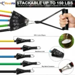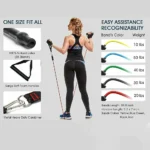 نقدم لك مجموعة أشرطة المقاومة تشتمل على خمسة أشرطة للتمارين الرياضية، ومثبت باب، ومقبضين للتوسيد، وحقيبة حمل، والتي يمكن أن تلبي مختلف تمارين العضلات في مختلف القطع، تأتي الأشرطة بأوزان مختلفة يمكن ربطها معا أو إختيار شريط واحد حسب قدرتك على التحمل.