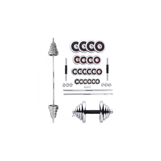 تريد إكتساب كتلة عضلية في المنزل دون الذهاب إلى الصالة؟ نقدم لك مجموعة أثقال من الكروم عالي الجودة باوزان مختلفة – 55كغ-50كغ -30كغ-20كغ-15 كغ- مناسبة لتقوية إكتساب عضلات أكبر في المنزل،